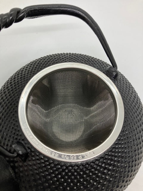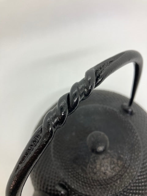This small tetsubin (ironware) can also be used as a kyusu (teapot), as it comes with a tea strainer. It is the size of a standard kyusu (teapot), but can be used over an open flame.