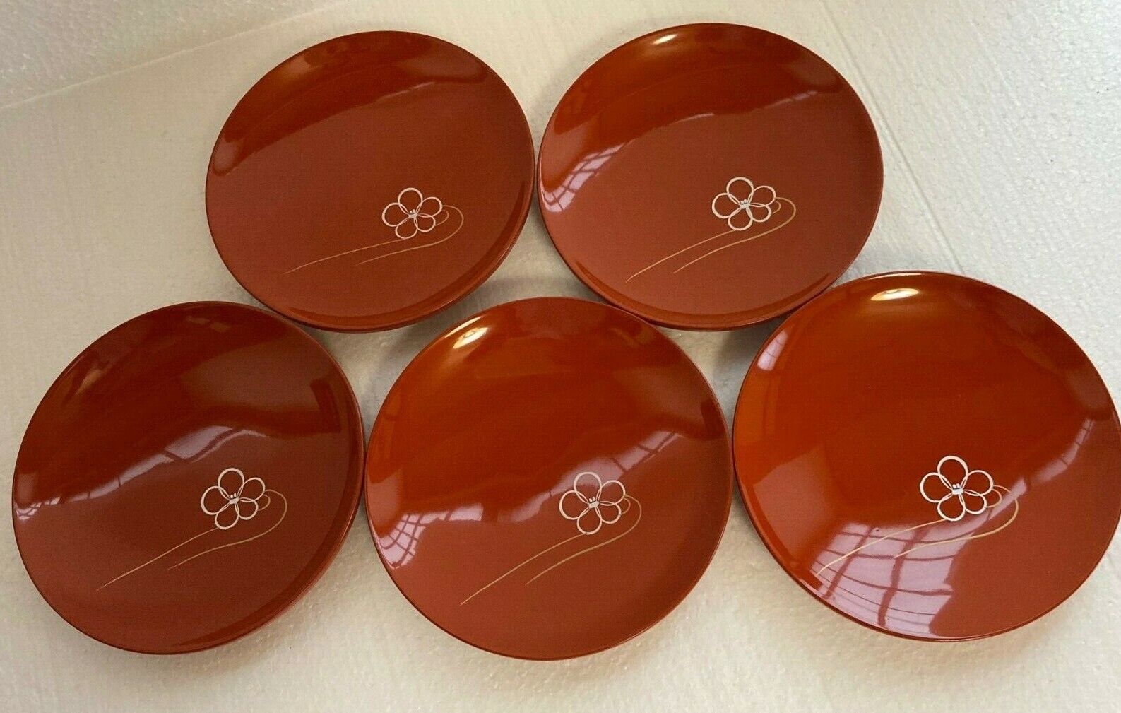 Preowned WAJIMA-NURI Lacquerware 5 Plates Set 5.3in Red